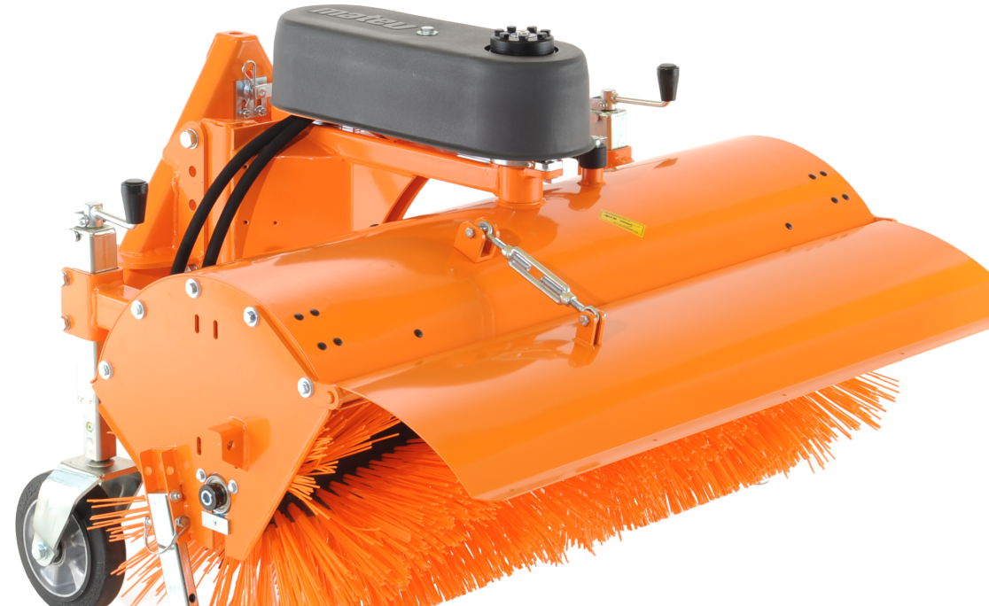 Unsere Kehrmaschinen der Baureihe SWE-45 sind für den professionellen Einsatz zum Schmutz- und Schneekehren an Klein- und Kommunaltraktoren und Trägerfahrzeugen zwischen 13 und 36 KW konzipiert. Durch den Mittelantrieb kann mit der Frontkehrmaschine SWE-45 beidseitig auch an Hindernissen im Randbereich sehr gut gekehrt werden. Die im Lieferumfang enthaltenen höhenverstellbaren, stabilen Stützräder sowie der optionale Pendelausgleich ermöglichen eine optimale Bodenanpassung.