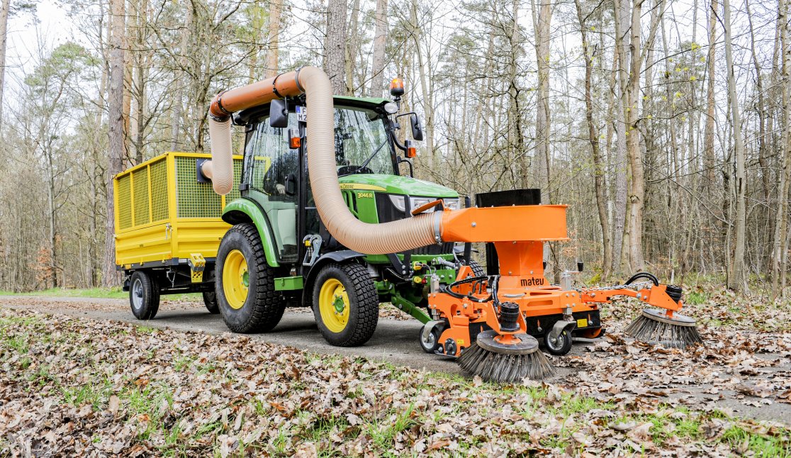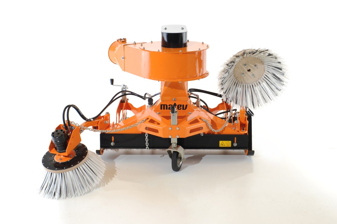 Das matev Saug-Kehrsystem MRM-120 AS ist ein perfektes Werkzeug für die großflächige Beseitigung von verschiedenen Materialien auf unterschiedlichen Untergründen. Dank der aktiven Absaugung, sowie umfangreichen Austattungsmöglichkeiten kann es problemlos Laub, Grünschnitt, Schmutz oder Müll entfernen und sorgt immer für perfekte Reinigungsergebnisse. Die MRM-120 AS verfügt über eine hydraulisch angetriebene, leistungsstarke und robuste Rotorbürste, die selbst nasses und festgefahrenes Kehrgut mühelos vom Untergrund löst. Das Häckselgebläse transportiert das Kehrgut dann weiter in einen Sammelbehälter wie zum Beispiel einen Anhänger oder ein Materialaufnahmesystem. So ist stets ist eine effiziente und wirtschaftliche Materialbeseitigung garantiert.