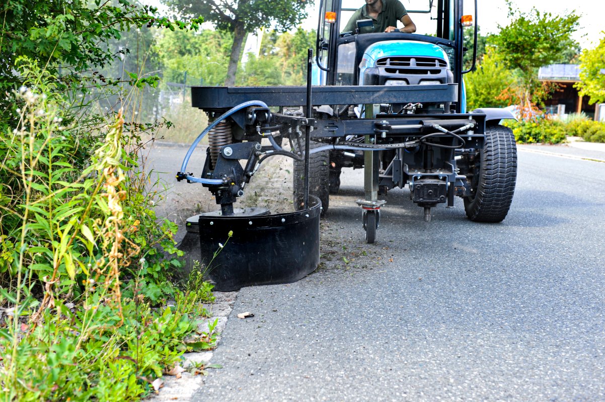 matev Wildkrautbürsten mit mechanischem Riemenantrieb entfernen zuverlässig und umweltfreundlich Wildkraut sowie hartnäckige Verschmutzungen auf Gehwegen ohne den Einsatz von schädlichen Chemikalien.