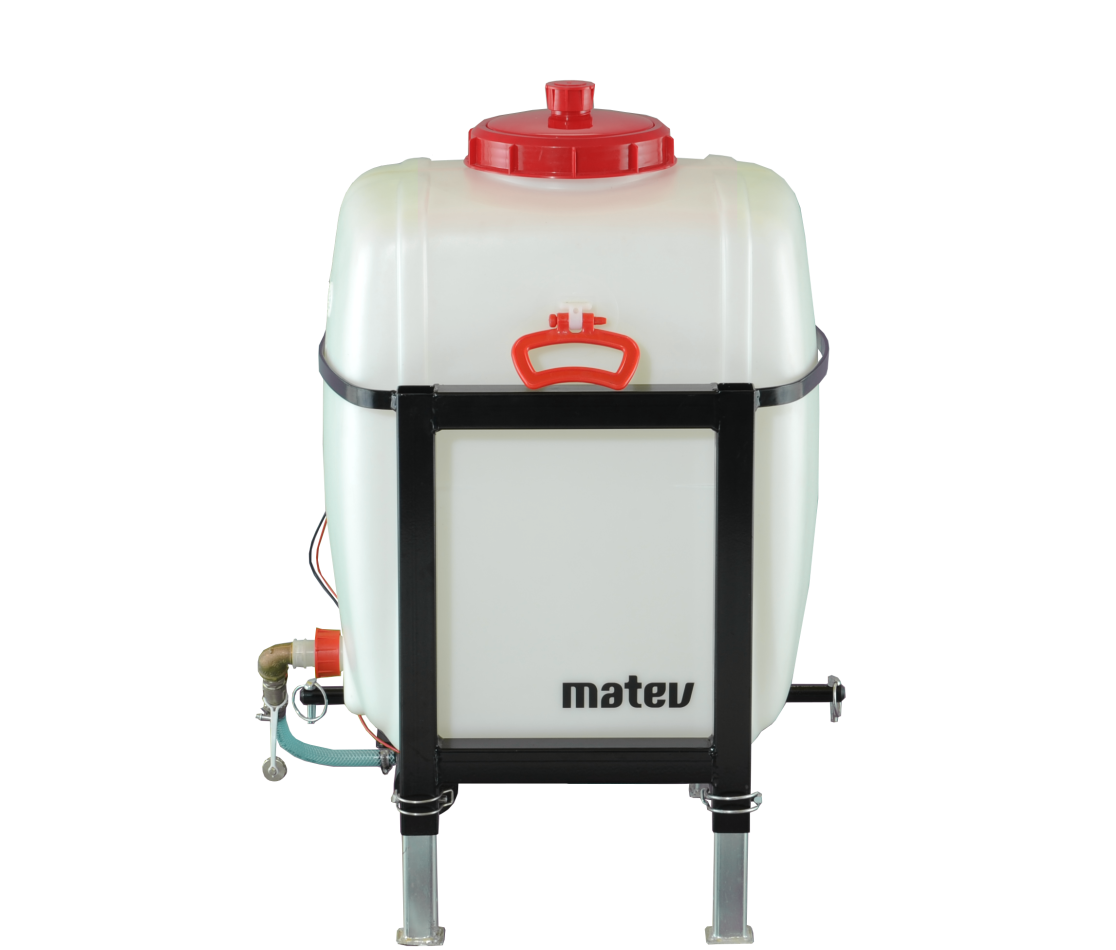 Die optionale Wassersprüheinrichtung mit 110 Liter Wassertank bringt gleichmäßig Wasser auf den Untergrund auf und sorgt dafür, dass sich der Staub bindet und die Staubentwicklung bei der Wildkrautbeseitigung auf trockenem Untergrund deutlich reduziert wird.