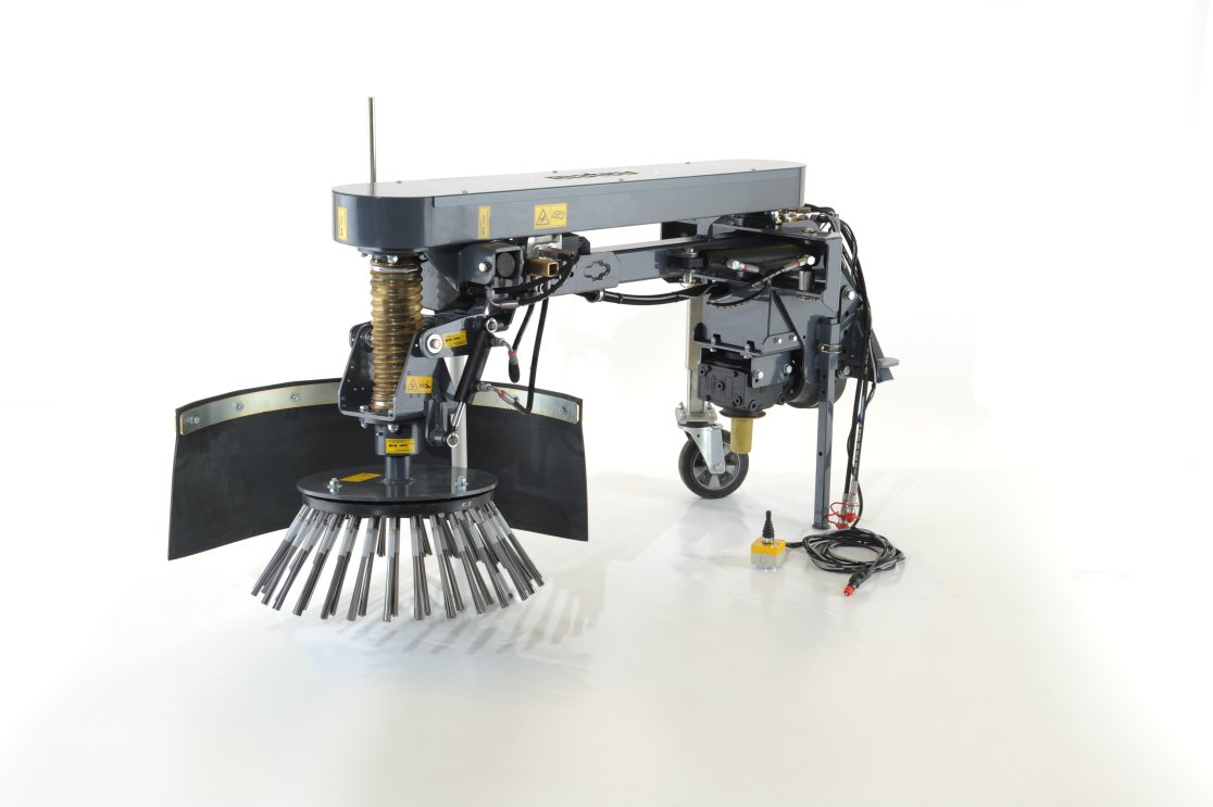 Der hydraulisch schwenkbare Auslegerarm der Wildkrautbürste verfügt über einen 70° Schwenkbereich. Dank umbaubarem Hydraulikzylinder wird bei Bedarf auch ein Schwenken und somit Arbeiten links in Fahrtrichtung ermöglicht.