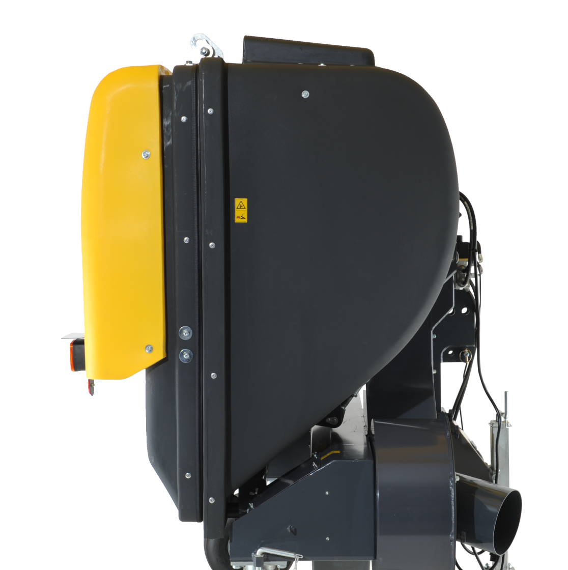 Das Grasaufnahmegerät verfügt über einen robusten und formschönen Behälter aus PE Kunststoffschalen, welcher in verschiedenen traktorspezifischen Farben erhältlich ist. Durch die optimierte Behälterform werden Rasenschnitt oder Laub stark verdichtet, das gesamte Volumen effizient genutzt und Entleerungsintervalle reduziert.