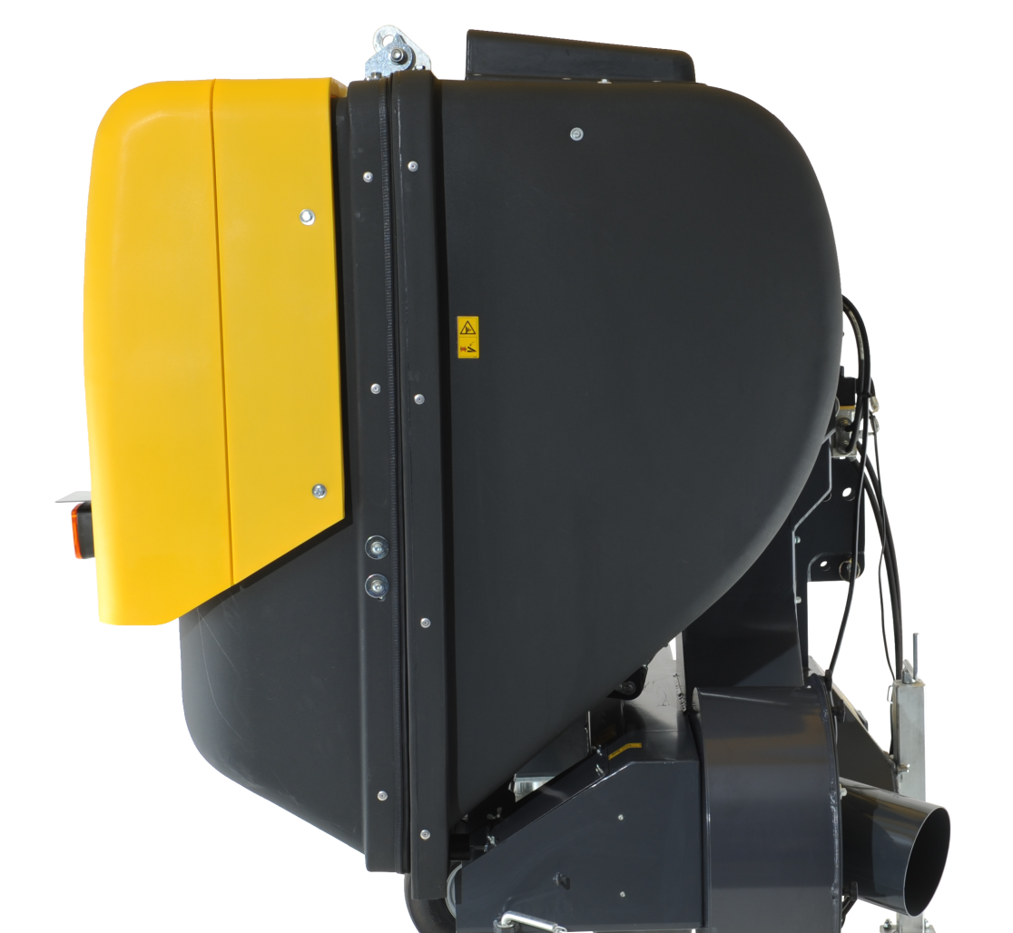 Das Grasaufnahmegerät verfügt über einen robusten und formschönen Behälter aus PE Kunststoffschalen, welcher in verschiedenen traktorspezifischen Farben erhältlich ist. Durch die optimierte Behälterform werden Rasenschnitt oder Laub stark verdichtet, das gesamte Volumen effizient genutzt und Entleerungsintervalle reduziert.