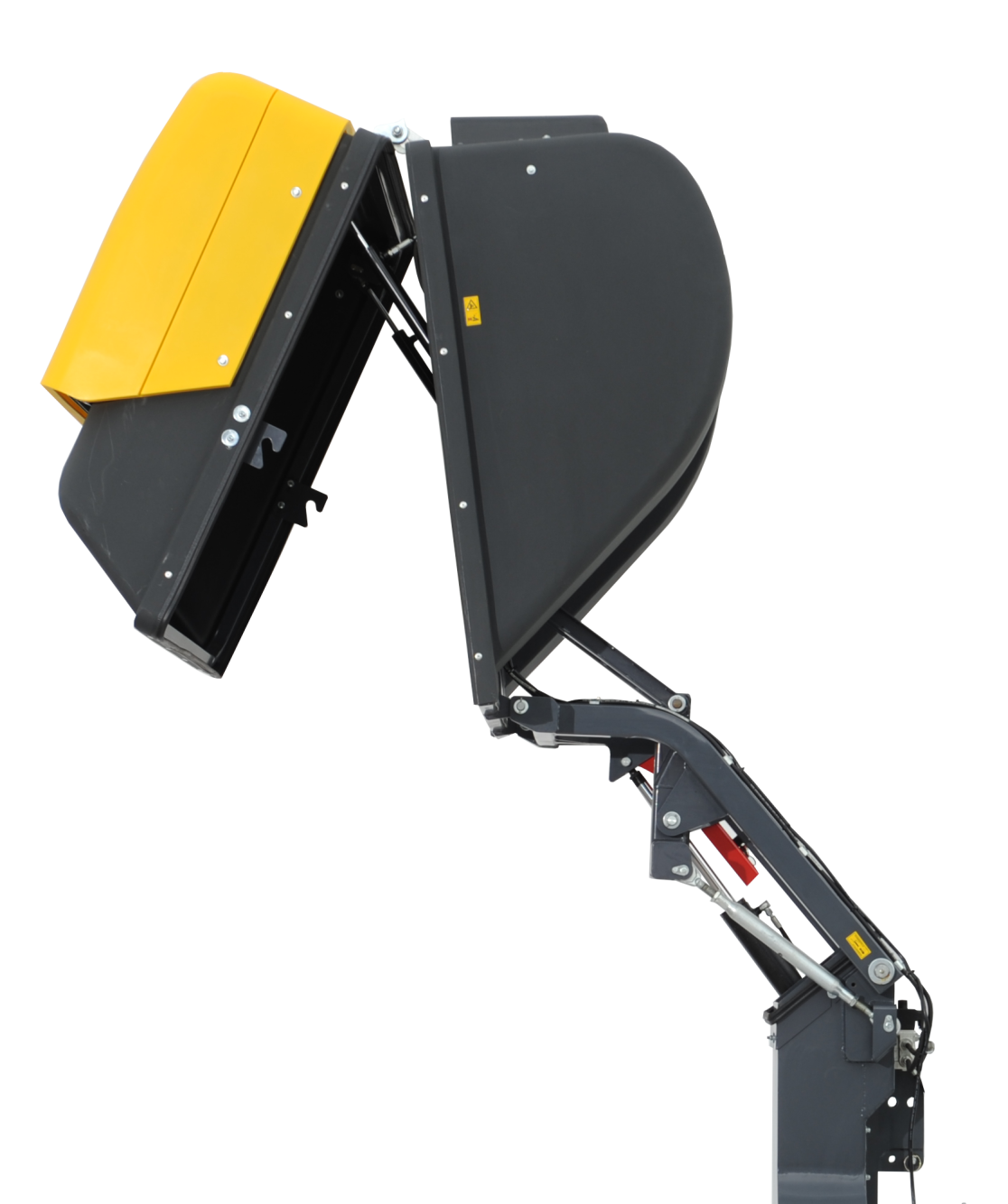 Die Entleerung des Behälters ist sowohl auf den Boden als durch die stabile Hubkinematik mit doppeltwirkenden Zylindern auch komfortabel z.B. auf einen Anhänger oder in einen Container möglich. Für ein gleichmäßiges Befüllen profitiert der Anwender dabei von der hohen Unterkante sowie der optimalen Überladeweite. Das CLS-H 1350 XE ist serienmäßig mit elektromagnetischem Umschaltventil ausgestattet.