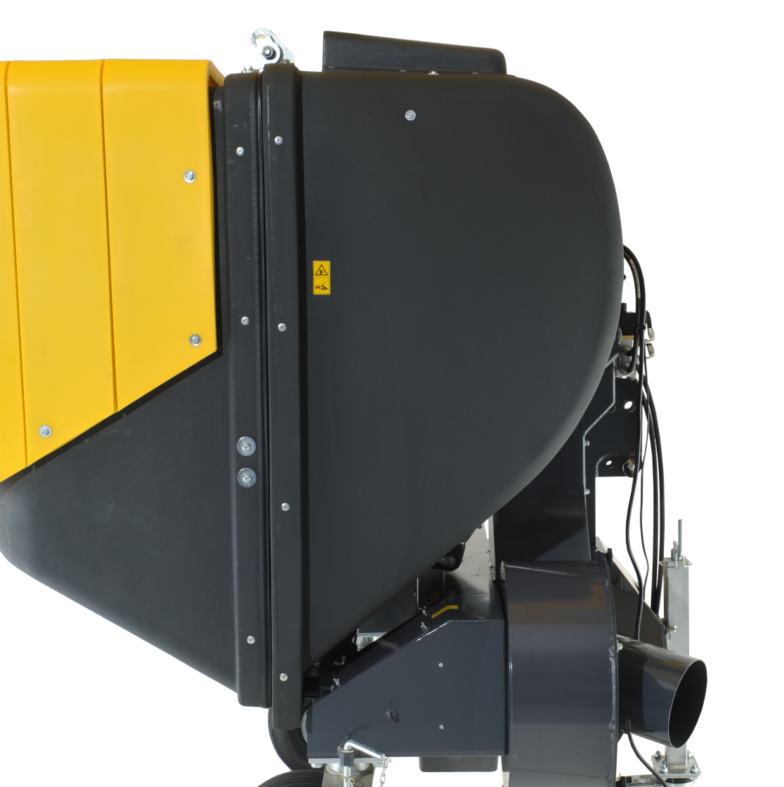 Das Grasaufnahmegerät verfügt über einen robusten und formschönen Behälter aus PE Kunststoffschalen, welcher in verschiedenen traktorspezifischen Farben erhältlich ist. Durch die optimierte Behälterform werden Rasenschnitt oder Laub stark verdichtet, das gesamte Volumen effizient genutzt und Entleerungsintervalle reduziert.