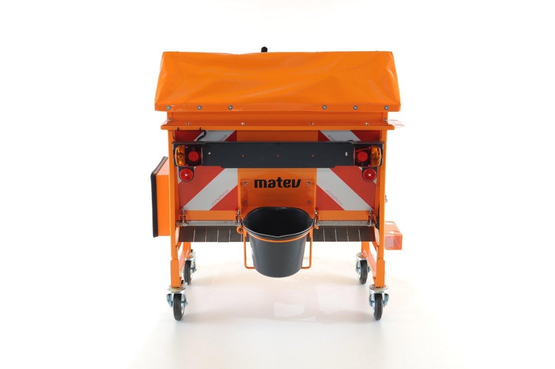 Die optionale komfortabel klappbare Abdeckplane schützt das Streugut vor Feuchtigkeit und verhindert so ein Verklumpen des Streumaterials.