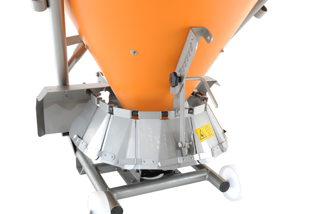 Dank der Trichterform des Behälters ist stets ein optimaler Streumaterialfluss gewährleistet.