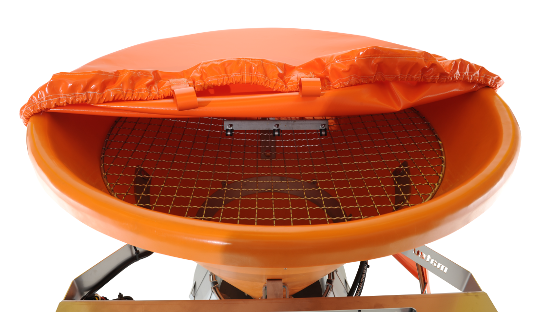 Die optionale komfortabel klappbare Abdeckplane schützt das Streugut vor Feuchtigkeit und verhindert so ein Verklumpen des Streumaterials.