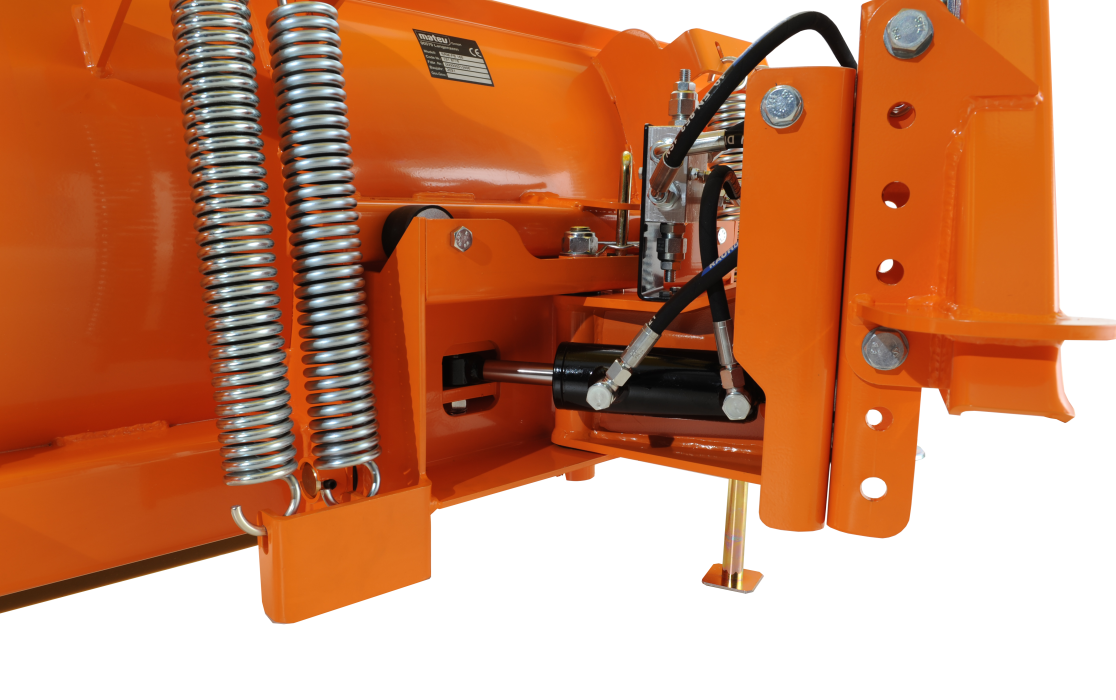 Das Schneeräumschild SRM-FB mit einer Schildhöhe von 55cm haben wir optimal für den Einsatz an Rasen- und Kompakttraktoren bis 22 kW abgestimmt. Durch den Anbau mit höhenverstellbarem Schnellkuppeldreieck Kat. 0 kann das Räumschild problemlos an den Traktor angebaut und angepasst werden. In Verbindung mit dem serienmäßig vorhandenen Pendelausgleich wird ein sauberes Räumergebnis erzielt. Um Beschädigungen vorzubeugen, klappt die Schildplatte beim Überfahren von Hindernissen nach vorne um und wird durch zwei Federn sofort wieder in Arbeitsstellung gezogen.