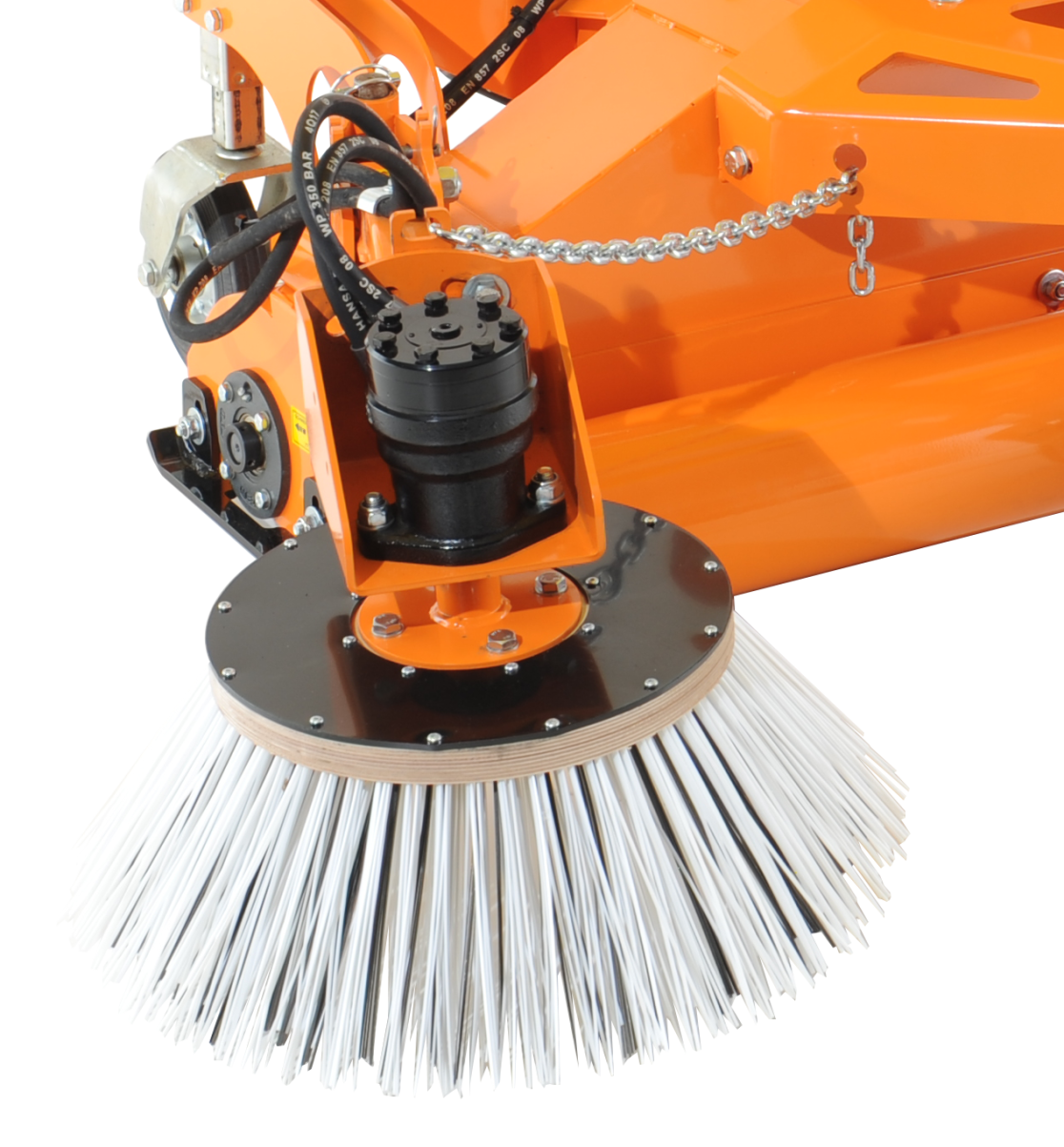 With side brooms optionally available for both sides with either steel trim or mixed steel/perlon trim, the working width can be extended up to 2.10m and precise cleaning can be achieved even in edge areas.