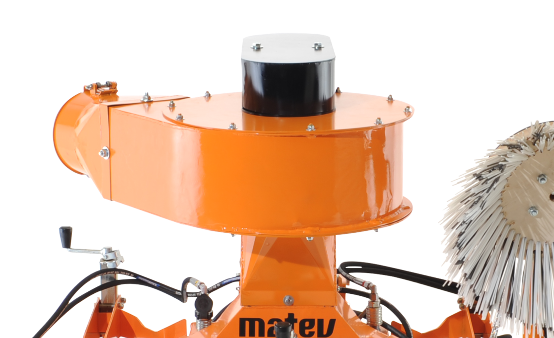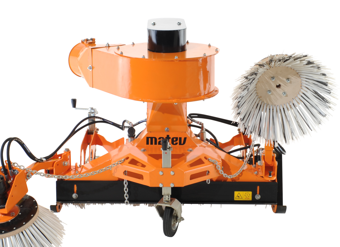 The matev MRM-120 AS suction sweeping system is a perfect tool for large-scale removal of various materials from different surfaces. Thanks to the active suction, as well as extensive equipment options, it can easily remove leaves, green cuttings, dirt or garbage and always ensures perfect cleaning results. The MRM-120 AS has a hydraulically driven, powerful and robust rotor brush that effortlessly detaches even wet and stuck sweepings from the ground. The chaff blower then transports the swept material further into a collection container such as a trailer or material collecting system. This always guarantees efficient and economical material removal.