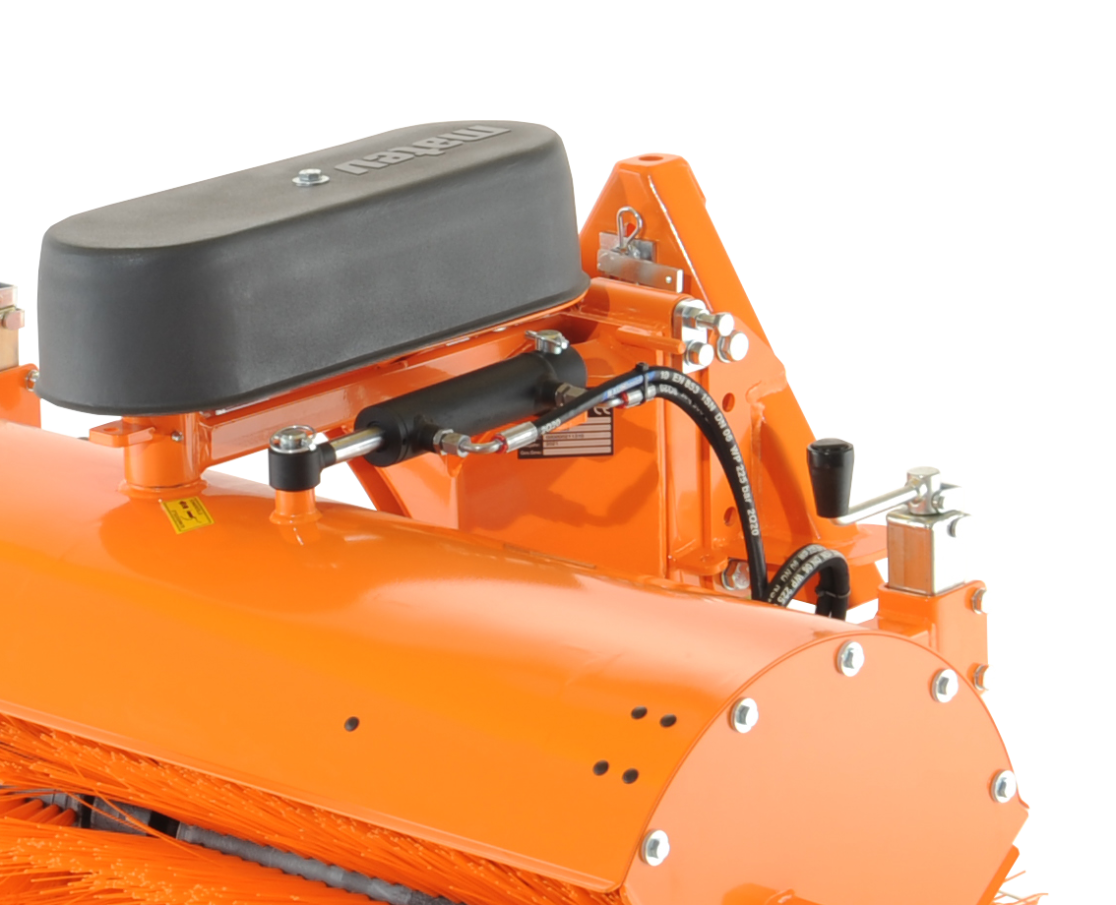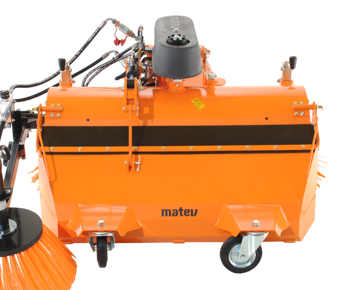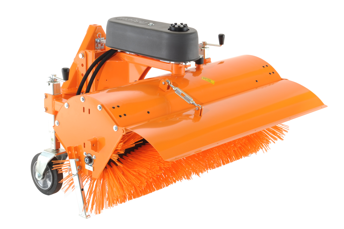 Additionally included in the standard equipment of this front sweeper is a hydraulic angle adjustment for lateral adjustment and a (lateral) double-sided bearing of the sweeping rollers.