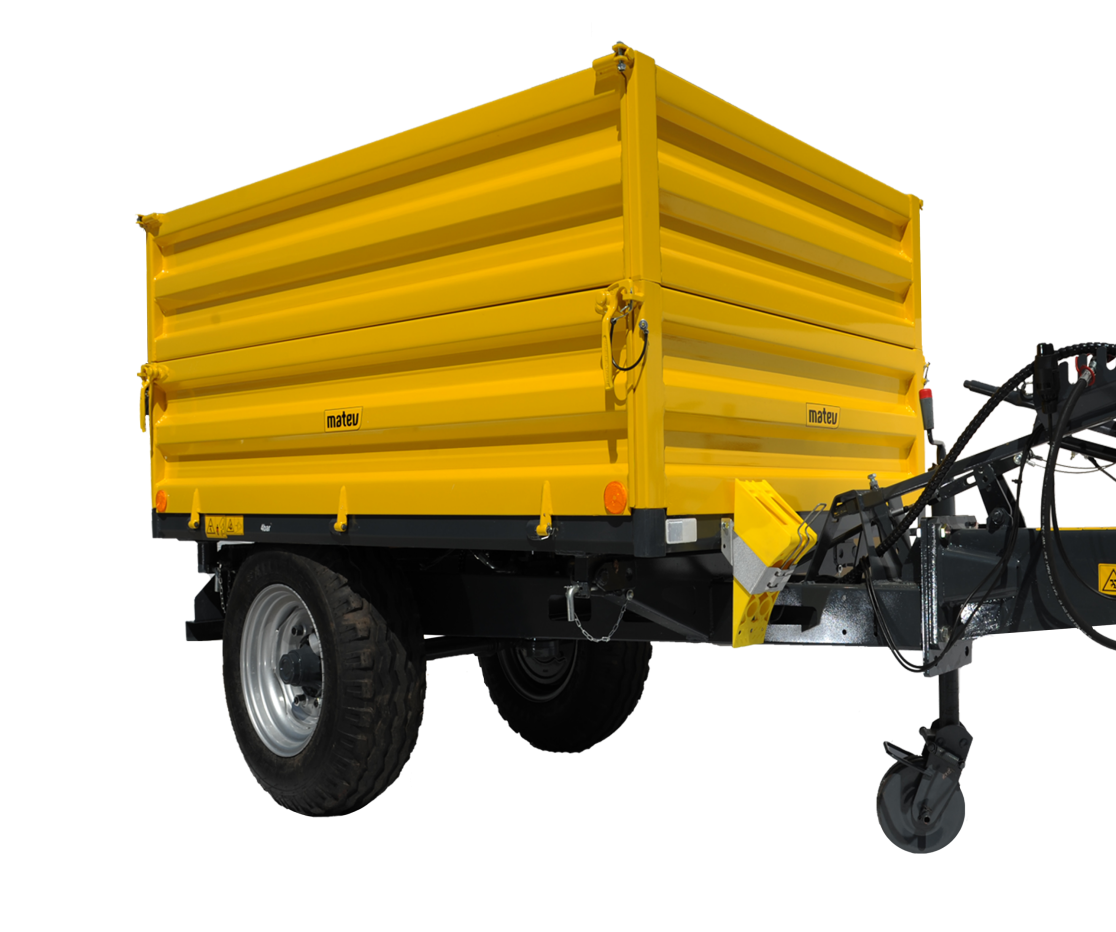 Our matev Trailer TRL-3D 20 is a flexible and robust single-axle three-way tipper. With a payload of 2 tons and a tipping angle of 45°, the trailer is ideally suited for professional municipal use or for use in gardening and landscaping as a trailer for vehicles between 20 and 40 hp. The trailer with a platform height of 720 mm has 400 mm high foldable steel side walls, a steel floor, a drawbar with 500-555 mm hitch height with overrun brake and hand brake and a solid, height-adjustable support wheel.