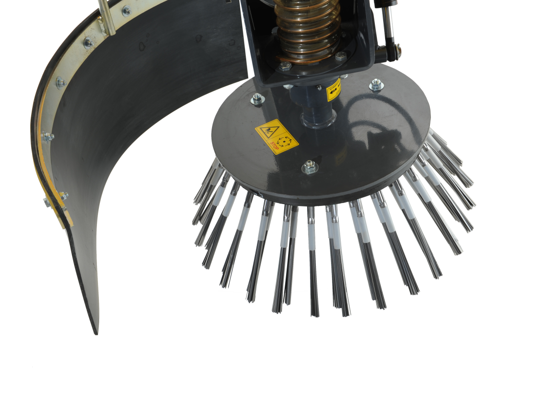 The optional splash guard, which can be adjusted to the individual brush setting, effectively prevents debris and stones from being projected away by the brush.