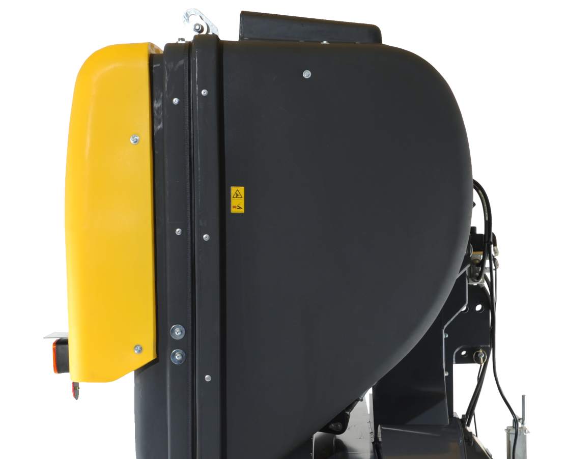The CLS-G 1050 XE low-dump collecting system features a lightweight but rugged, self-supporting hopper made up of PE plastic shells. The hopper's optimized shape ensures that the clippings are highly compacted, making efficient use of the entire volume. Even under the toughest conditions, the powerful turbine enables economical processing on a wide range of surfaces. The optimized airflow and filter system greatly reduce dust generation even in dry conditions.