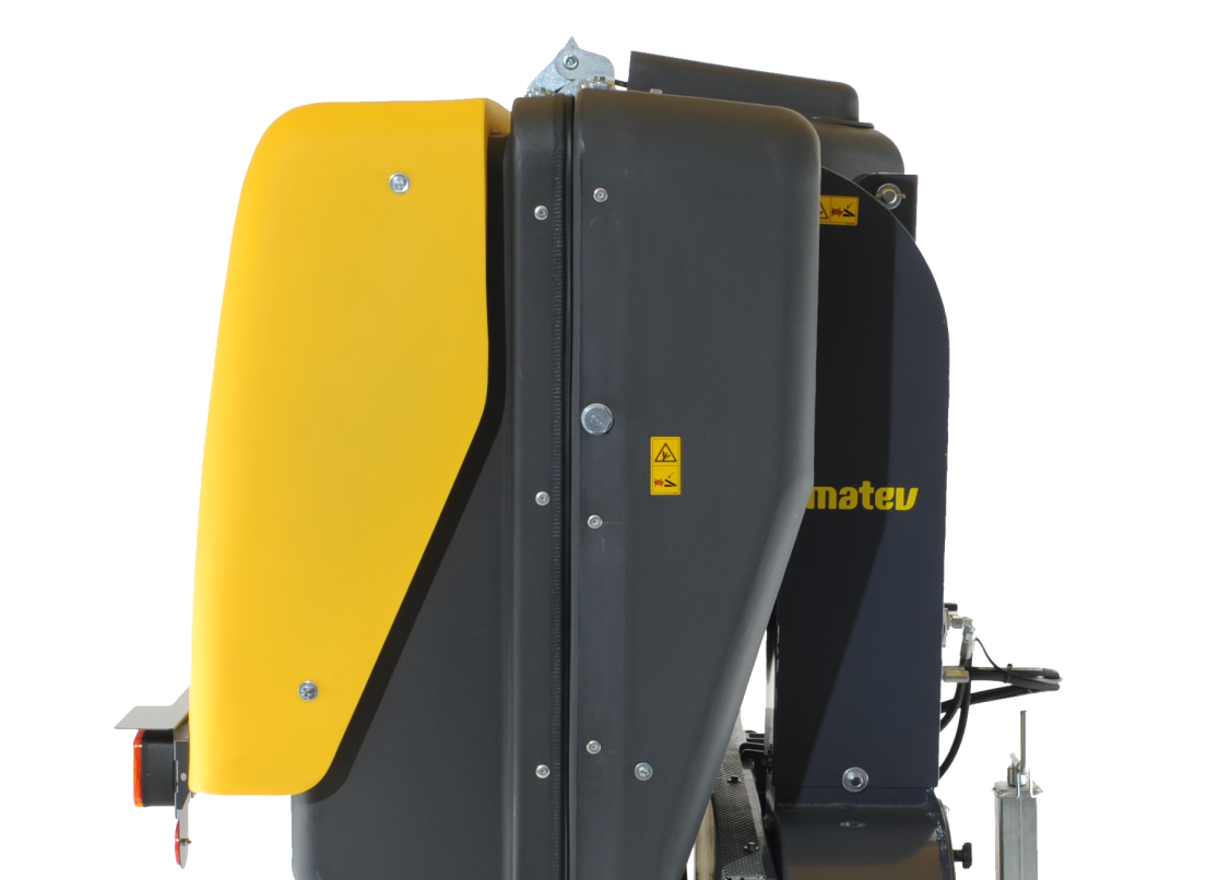 The grass collection system has a rugged and shapely hopper consisting of PE plastic shells which is available in various tractor-specific colors. Due to the optimized container shape, lawn cuttings or leaves are strongly compacted, the entire volume is used efficiently and the frequency of emptying breaks is reduced.