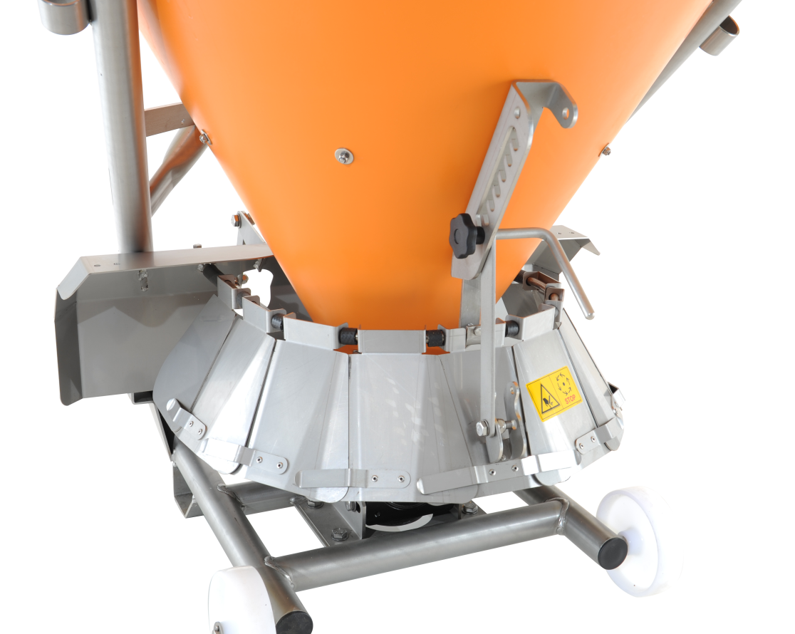 The funnel shape of the hopper ensures optimal spreading material flow at all times.